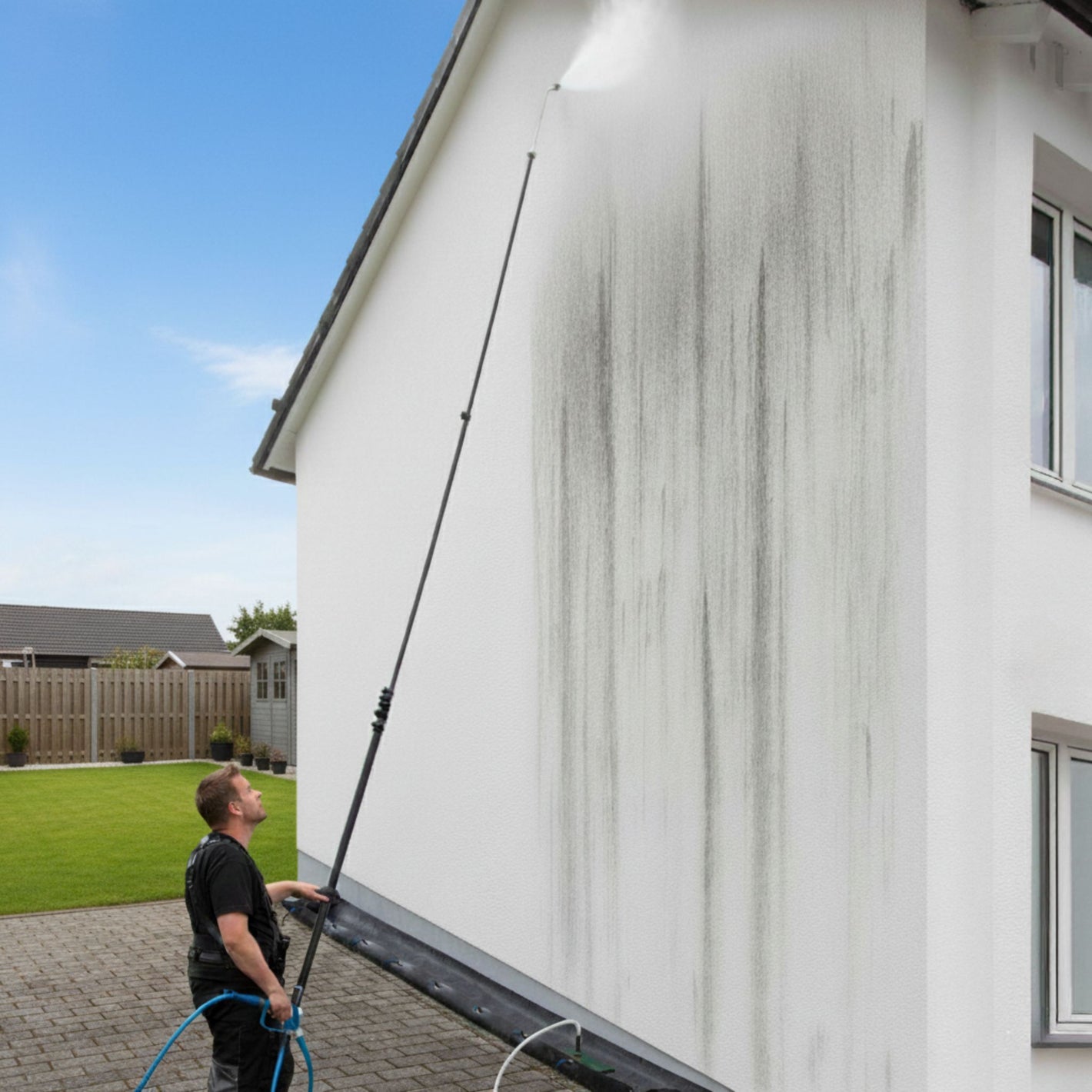 Bevor wir mit der Reinigung beginnen,begutachten wir Ihre Fassade, um den Grad der Verschmutzung und die Art der Oberfläche zu bestimmen. Anschließend reinigen wir eine kostenlose Probefläche an Ihrer Immobilie. So können Sie das Potenzial unserer Fassadenreinigung mit eigenen Augen sehen, bevor Sie uns beauftragen.