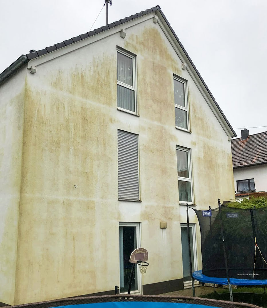 Wir behandeln Ihre Fassade mit einem speziellen Reinigungsmittel vor. Dieses Mittel löst hartnäckige Verschmutzungen, Algen und Pilze effektiv vom Untergrund. So stellen wir sicher, dass die anschließende Reinigung optimal wirken kann.