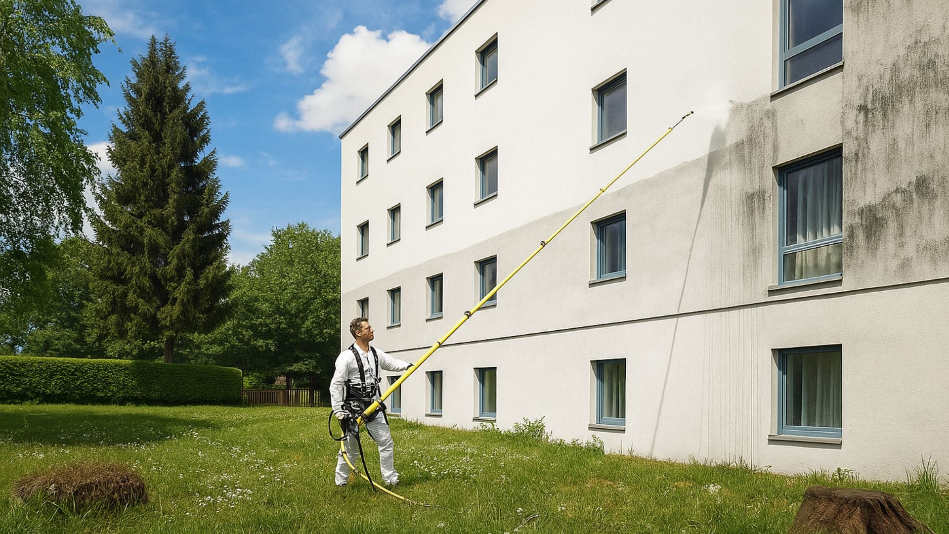 Dr. Bee bietet innovative und nachhaltige Lösungen für die erstklassige Reinigung von Fassaden aller Art und Größe. Durch den Einsatz modernster Technik reinigen wir effizient und ohne Gerüst, was Ihnen wertvolle Zeit und erhebliche Kosten spart. Unsere Expertise garantiert eine materialschonende und effektive Behandlung, die den Wert Ihrer Immobilie langfristig sichert.